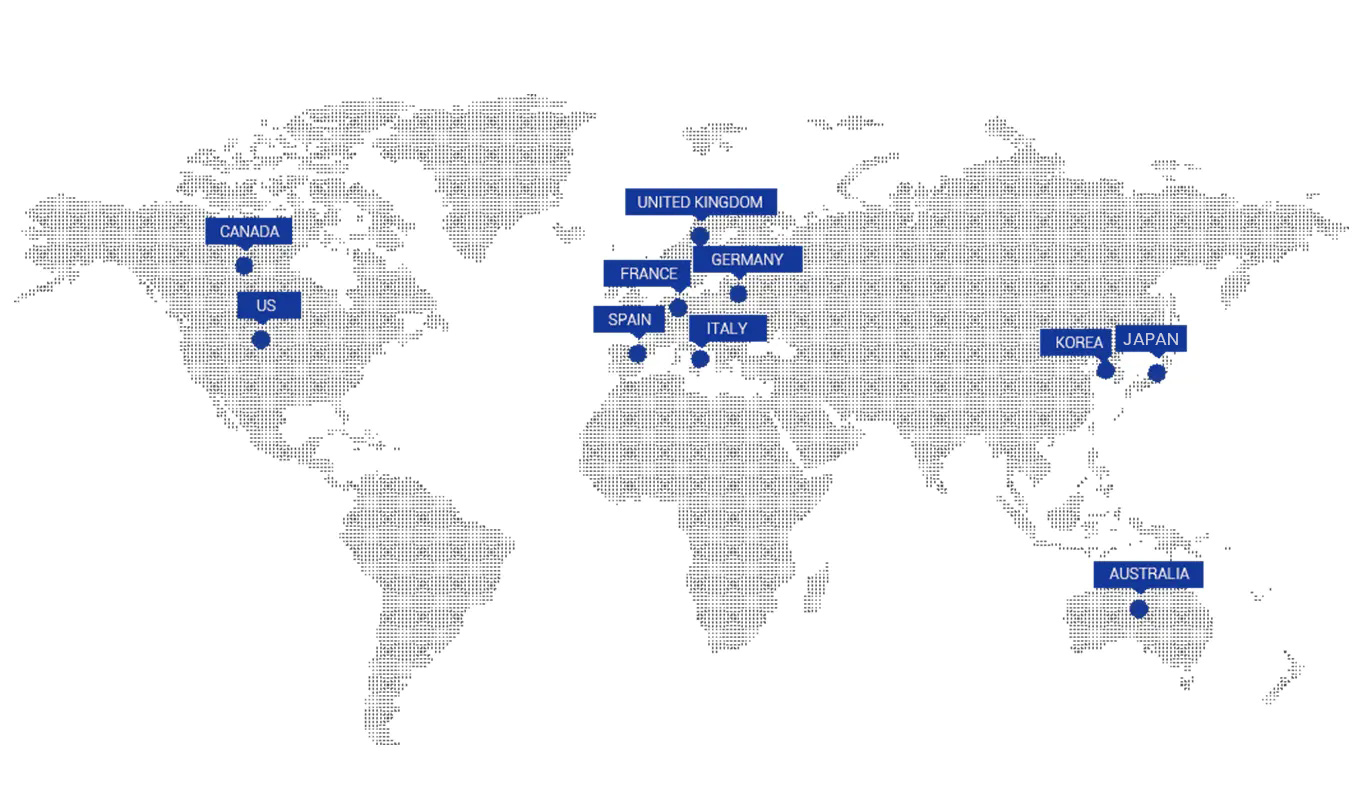 Duitsland, Japan, Spanje, Italië, Groot-Brittannië, Zuid-Korea, Australië en Canada.